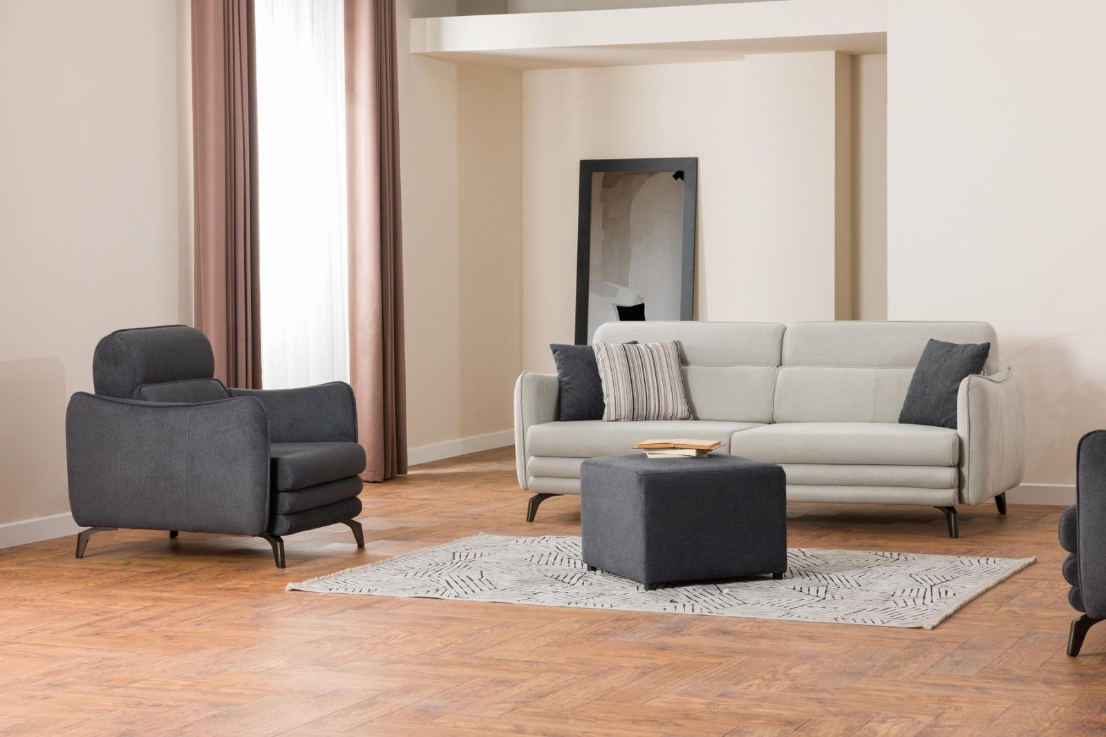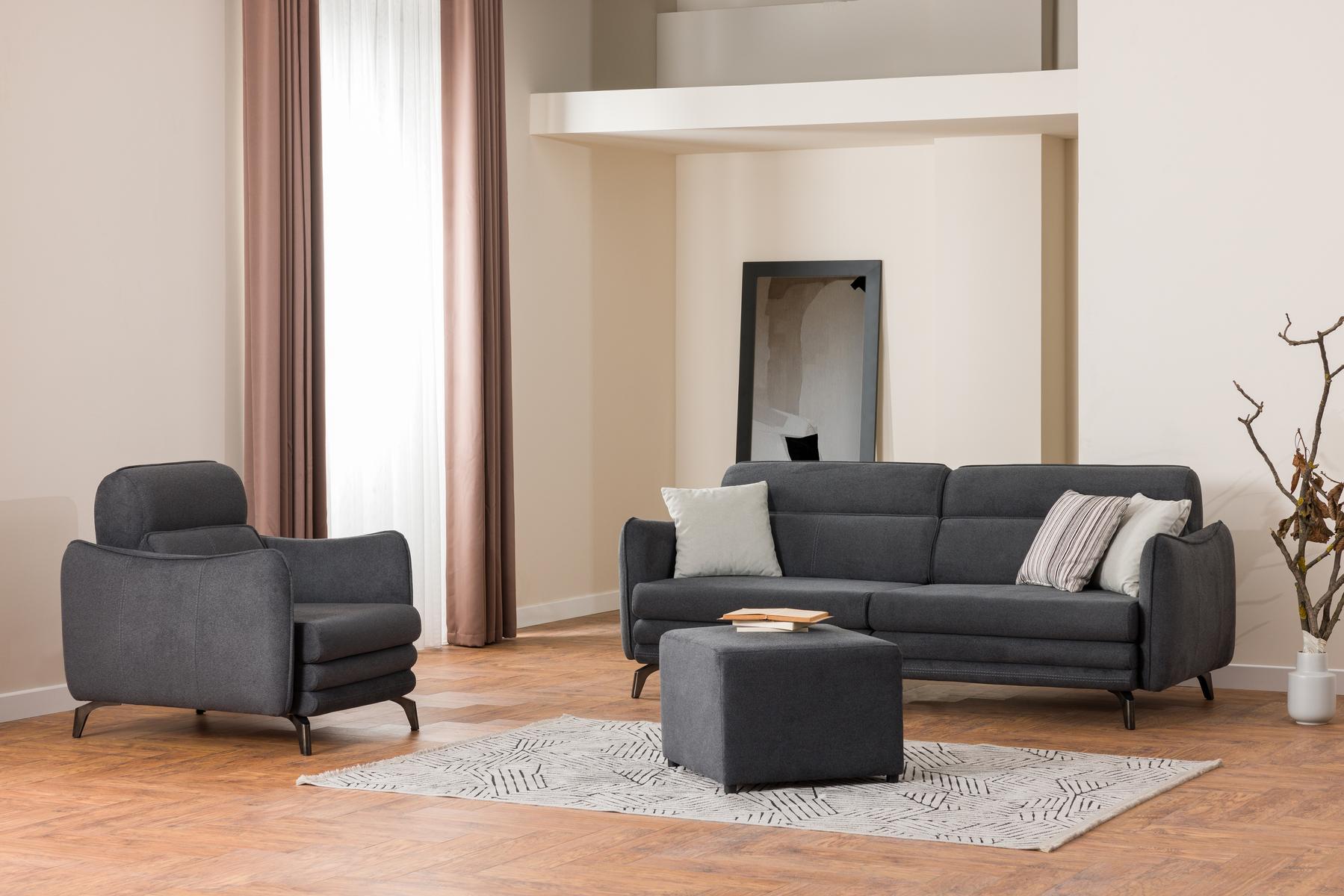 Parma Koltuk Takımı, modern İtalyan tasarımından ilham alınarak üretilmiş; yüksek konforlu yapısı ve rafine detaylarıyla dikkat çekiyor. Yumuşak geçişli kol yapısı ve geniş oturum alanı sayesinde hem estetik hem de işlevsel bir kullanım sunar. İnce ahşap ayaklarıyla yerden yüksek tasarımı, temizlik kolaylığı sağlar ve ferah bir görünüm sunar. Parma, sade lüksü arayanlar için ideal bir tercih.